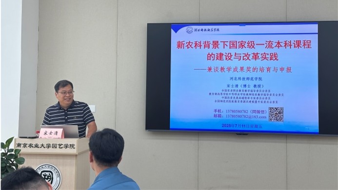 7月11日,公司宋士清教授应南京农业大学园艺学院的邀请,面向青年教师做了题为“新农科背景下国家级一流本科课程的建设与改革实践——兼谈教学成果奖的培育与申报”的学术报告。
