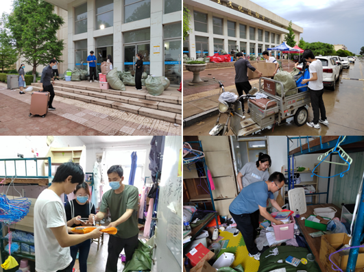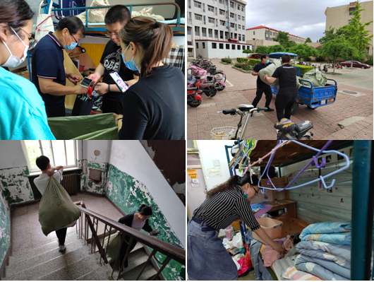 热火朝天地帮毕业生整理打包搬运邮寄行李的师生党员们