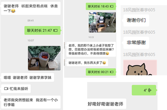 为保证活动的顺利进行,活动前,学工办出台活动方案,统计需要帮助打包邮寄员工的信息,联系快递点。活动中,师生党员点对点服务毕业生打包邮寄行李。负责打包的党员师生们通过手机视频通话,让远在家中的毕业生们亲眼见证“整理、打包、搬运、邮寄”全过程。从床上到床下,从书桌到衣柜,一步一步认真整理;从被褥到鞋服,从书籍到零碎物品,分门别类打包得井井有条,受到了毕业生们的一致好评。