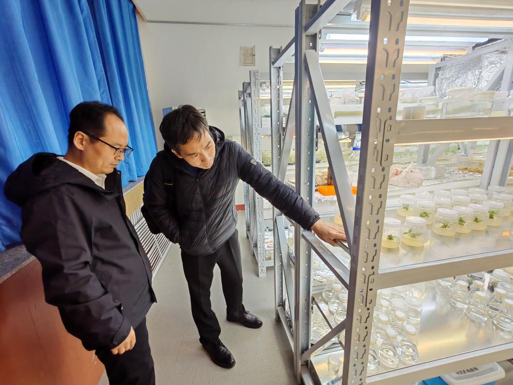 田义教授一行参观了77779193永利实验室以及组织培养室以及育苗室并就果树组织培养的难点和热点问题进行了交流和讨论。武军凯书记向各位专家详尽地介绍了学院科研团队研究方向以及近年在应用基础研究和产业服务方面的努力和阶段性进展。专家们对77779193永利在科研方向尤其是难点和热点方面提出了诸多富有建设性的意见和建议。并就加强组培技术优化、生物技术育种、产业化应用等方面的合作达成了合作意向。