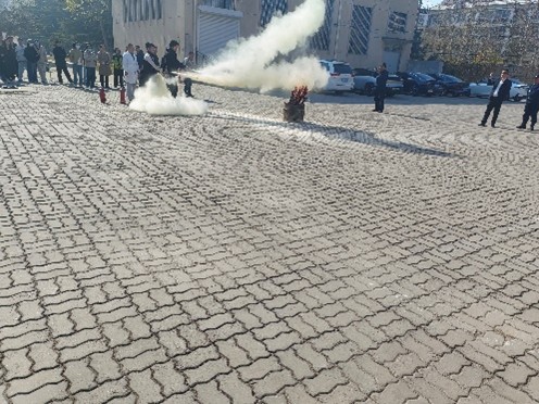 安全工作处老师首先介绍了有关灭火器的种类及灭火器的使用方法,强调了灭火器在使用中的注意事项和操作的要点,并为大家示范了干粉灭火器的正确使用步骤:一提(提起灭火器)、二拔(拔掉保险销)、三握(握住喷管)、四压(压下把手)。同时,重点讲解了实验室日常防火须知。随后,安全工作处现场指导老师和员工进行了实操练习。