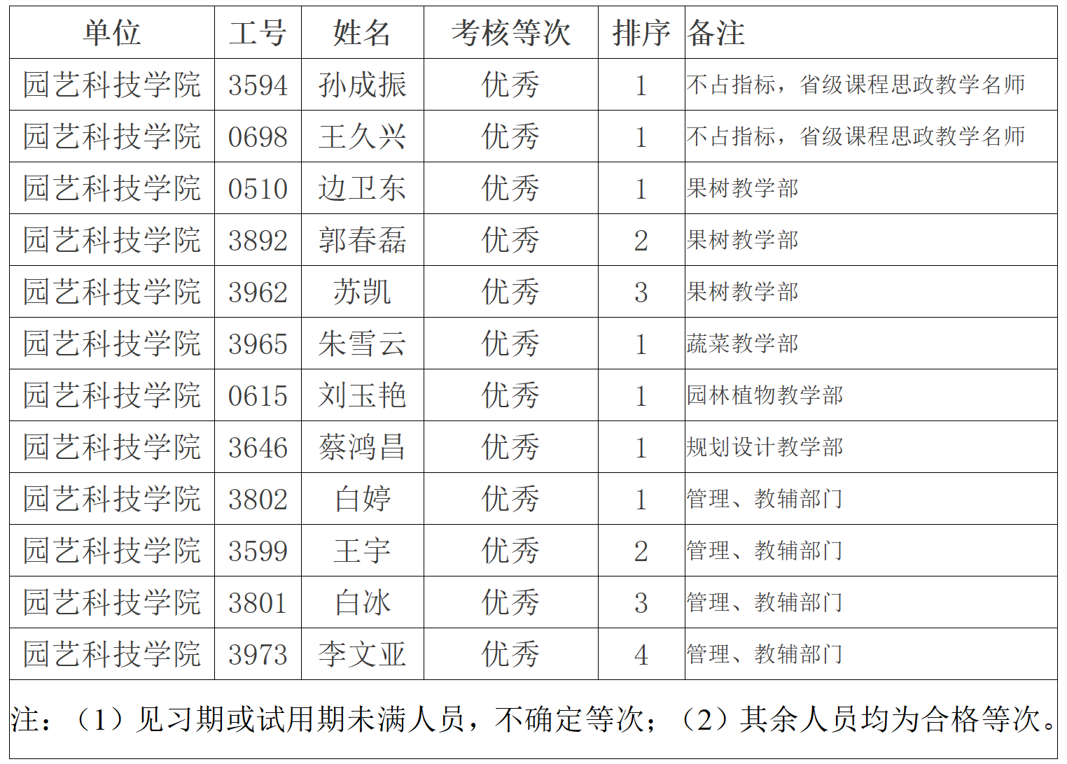 经学院2021年教职工年度考核领导小组研究通过,现将公司年度考核结果公示如下: